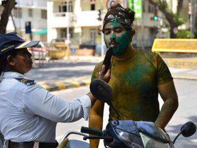 रंगपंचमीसाठी मोठा फौजफाटाही तैनात करण्यात आला होता, त्यावेळी पोलीस ड्रंक अँड ड्राइव्हची तपासणी करताना पाहायला मिळत होते.