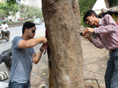 आंघोळीच्या गोळी या उपक्रमाच्या माध्यमाने तरुणांच्या एका टीमनं झाडांवरील खिळे काढण्याचा स्तुत्य उपक्रम 1 एप्रिलला दादर परिसरात शिवाजी पार्क परिसरात सुरू केला.