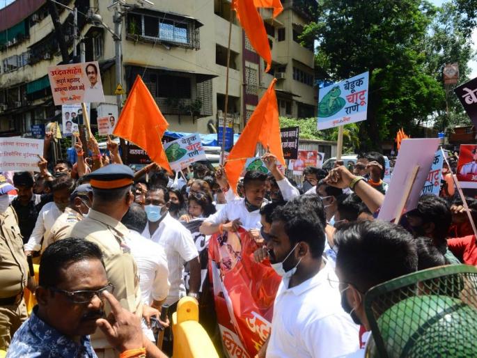 1 / 13नारायण राणेंनी राज्याचे मुख्यमंत्री उद्धव ठाकरे यांच्याबाबत केलेल्या वादग्रस्त विधानानंतर राज्यभर शिवसैनिक आक्रमक झाले आहेत. मुंबईत राणेंच्या घराबाहेर युवासेनेच्या कार्यकर्त्यांनी जोरदार निर्दशनं केली. 2 / 13युवासेनेचे वरुण सरदेसाई यांच्या नेतृत्वात राणेंच्या जुहू येथील निवासस्थानाबाहेर युवासेनेच्या कार्यकर्त्यांकडून निदर्शनं केली गेली. यावेळी राणे समर्थक आणि युवासेनेचे कार्यकर्ते आमने सामने आले.3 / 13दोन्हीकडून जोरदार घोषणाबाजी सुरू असताना दगडफेकीला सुरुवात झाली. त्यामुळे जोरदार राडा सुरू झाला आणि परिस्थिती नियंत्रणात आणण्यासाठी पोलिसांना सौम्य लाठीचार्ज करावा लागला. 4 / 13युवासेनेच्या कार्यकर्त्यांनी पोलिसांनी लावलेले बॅरिगेट तोडून राणेंच्या घराबाहेर निदर्शनं करण्यास सुरुवात केली. पोलिसांनी कार्यकर्त्यांना थांबवण्याचा प्रयत्न केला.5 / 13पण यावेळी राणे समर्थक आणि युवासैनिक आमने-सामने आले. त्यानंतर दोन्ही गटांमध्ये जोरदार राडा सुरू झाला. यात अनेक महिलांचाही समावेश होता.6 / 13संपूर्ण राज्यभर राणेंविरोधात ठिकठिकाणी शिवसेनेकडून आंदोलनं सुरू आहेत. तर राणेंच्या विधानाविरोधात पुणे, नाशिक, औरंगाबाद, मुंबई, ठाण्यात तक्रारी दाखल करण्यात आल्या आहेत. 7 / 13नारायण राणे सध्या चिपळूणमध्ये असून त्यांची जनआशीर्वाद यात्रा सुरू आहे. यादरम्यान मुंबईत वरुण सरदेसाई यांच्या नेतृत्वात जोरदार निदर्शनं करण्यात आली आहेत.8 / 13पोलिसांनी केलेल्या लाठीचार्जमध्ये युवासेनेचे काही कार्यकर्ते जखमी झाल्याचंही वृत्त समोर आलं आहे. तर एक पोलिसही जखमी झाला आहे. 9 / 13जुहू येथे युवासैनिकांसह आलेले वरुण सरदेसाई म्हणाले, की शिवसेना पक्षप्रमुख, महाराष्ट्राचे मुख्यमंत्री उद्धव ठाकरे हे आमचे दैवत आहेत. आमच्या देवावर हात उगारण्याची भाषा कुणी करत असेल तर ते युवासैनिक सहन करणार नाही. उद्धव ठाकरेंसाठी आम्ही शेकडो लाठ्या खाण्यास तयार आहोत.10 / 13सिंहाच्या गुहेत येऊन दाखवा, असे आव्हान नितेश राणे यांनी दिले होते. मात्र आम्ही सिंहाच्या गुहेसमोर नाही तर उंदराच्या बिळासमोर आलो आहोत, असा टोला वरुण सरदेसाई यांनी लगावला आहे.11 / 13मुंबईसह अनेक ठिकाणी दोन्ही पक्षांचे कार्यकर्ते आमने-सामने येत आहेत. एकीकडे नाशिक पोलीस नारायण राणे यांना अटक करण्यासाठी रवाना झाले आहेत. मात्र नारायण राणे यांची जनआशीर्वाद यात्रा चिपळूणमध्ये सुरू आहे.12 / 13आव्हान देण्याची भाषा राणेंकडून करण्यात आली होती. आपण त्यांच्या बंगल्याबाहेर जमलो, मात्र उंदिर आधीच पळून गेले होते. नारायण राणेंना अटक व्हायलाच हवी, असं वरुण सरदेसाई म्हणाले.13 / 13शिवसेनेचे पक्षप्रमुख हे मुख्यमंत्री आहेत. त्यामुळे मुख्यमंत्र्यांचा सन्मान 