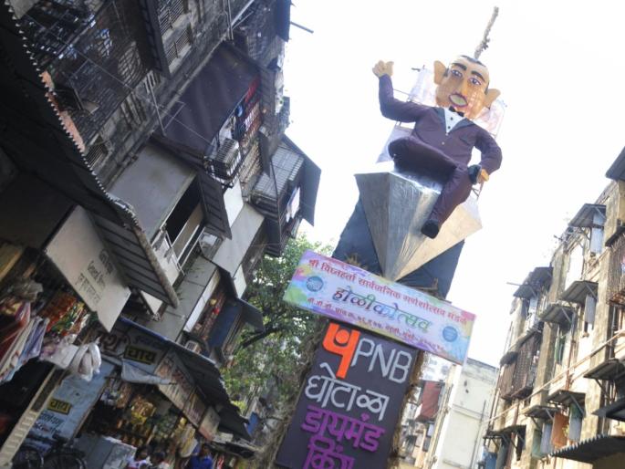 1 / 5'होळी रे होळी पुरणाची पोळी' असे म्हणत दरवर्षी होळीचा उत्सव साजरा होतो. आजही होळीचा सण आहे. मुंबईतील बीडीडी चाळीत घोटाळेबाज नीरव मोदी आणि पीएनबी बँकेच्या प्रतिमेचे दहन केले जाणार आहे.2 / 5वाईट प्रथा, वाईट रुढी यांचे अग्नीत दहन करून चांगल्याच्या निर्मिती व्हावी अशी प्रार्थना होळीच्या दिवशी केली जाते. तोच उद्देश समोर ठेवून पीएनबी बँकेला चुना लावून पळालेल्या नीरव मोदीच्या ५० फुटांपेक्षा जास्त उंचीच्या प्रतिमेचे दहन करण्यात येणार आहे.3 / 5पंजाब नॅशनल बँकेला १२ हजार कोटींपेक्षा जास्त रकमेचा चुना लावून नीरव मोदी देशाबाहेर पळाला. त्याला त्याचा मामा आणि व्यवसायातील सहकारी मेहुल चोक्सीनेही साथ दिली. विजय मल्ल्यापेक्षाही मोठा कर्जबुडव्या नीरव मोदी ठरला त्यामुळेच लोकांच्या मनात त्याच्याबद्दल संताप आहे. पीएनबीच्या अधिकाऱ्यांनीही नीरव मोदीला साथ दिली. त्यामुळे ग्राहकांच्या सेवेसाठी तत्पर असणाऱ्या पीएनबीवरचा लोकांचा विश्वास उडाला आहे. 4 / 5बीडीडी चाळीतील या इमारतीतर्फे दरवर्षी होलिका उत्सव साजरा करताना देशात किंवा राज्यात घडलेल्या घटनांची थीम होळी पेटवताना साकार केली जाते. याआधी नोटाबंदीचा निर्णय, कर्जबुडव्या विजय मल्ल्या, कसाब यांच्या प्रतीकात्मक प्रतिमांचे दहनही या ठिकाणी करण्यात आले आहे. 5 / 5ग्रँटरोडच्या पंचशील सोसायटीमध्येही एक आगळीवेगळी होळी लोकांचे लक्ष वेधून घेत आहे. याठिकाणी 'हुक्क्याची' प्रतिकृती उभारण्यात आली आहे. हुक्का पार्लरमुळे कमला मिलमध्ये आग लागली आणि त्याचे सेवनही शरीराला अपायकारक असते.