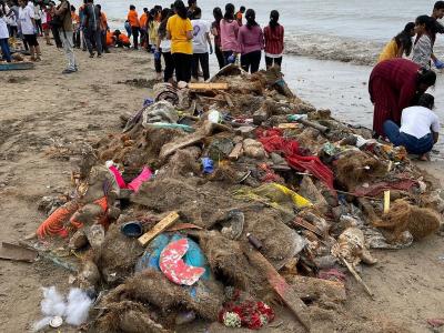 पर्यावरणप्रेमींसह अमित ठाकरे यांनी दादर समुद्र किनाऱ्यावर वाळूत रुतलेले गणेश मूर्तींचे अवशेष तसंच निर्माल्य उचलून हा किनारा स्वच्छ केला.