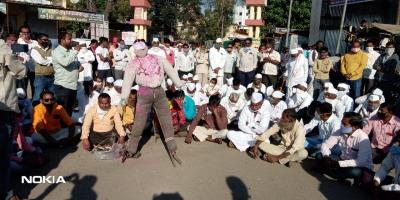नाशिक जिल्ह्यातील येवला तालुक्यात कृषीमंत्री तोमर यांचे पुतळ्याचे तिरडी आंदोलन करण्यात आले