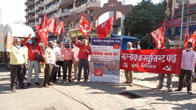 लालबाग येथे कम्युनिष्ट मार्क्सवादी कार्यकर्त्यांनी आंदोलनाला पाठिंबा दिला, भारत बंदमध्ये उत्स्फुर्त सहभाग नोंदवला