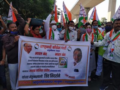 मानखुर्द येथे राष्ट्रवादीच्या कार्यकर्त्यांनी केंद्र सरकारविरोधी घोषणाबाजी करत भारत बंदमध्ये सहभाग नोंदवला