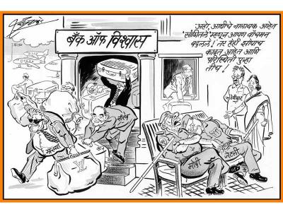 महाराष्ट्र नवनिर्माण सेनेचे अध्यक्ष राज ठाकरे जितके प्रभावी वक्ते आहेत, तितकेच ताकदीचे व्यंगचित्रकारही. गेल्या वर्षी २१ सप्टेंबरला त्यांनी फेसबुकवर पहिलं पाऊल टाकलं होतं. त्यानंतर, गेल्या सहा महिन्यात त्यांनी अनेक विषयांवरची व्यंगचित्र या पेजवरून पोस्ट केली. त्यात त्यांचं प्रमुख लक्ष्य पंतप्रधान नरेंद्र मोदी-अमित शहा जोडीच होती. पण त्यासोबत त्यांनी शिवसेना पक्षप्रमुख उद्धव ठाकरे यांनाही चिमटा काढला होता. त्यातील काही खास व्यंगचित्रं...