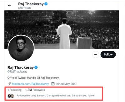 बृजभूषण आणि राज ठाकरे यांच्या ट्विटरवरील फॉलोअर्सची संख्या पाहिल्यास बृजभूषण हे राज यांच्या कुठेही लागत नाहीत. कारण, राज यांचे ट्विटरवर तब्बल 1.3 मिलियन्स म्हणजे 13 लाख फॉलोअर्स आहेत.