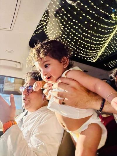 राज ठाकरेंच्या हातात त्यांचा नातू किआन होता, या नातवाला गोंजारण्यासाठी अनेकांनी पुढे येऊन स्मीतहास्य केल्याचं दिसून आलं. विशेष म्हणजे मुख्यमंत्री आणि उपमुख्यमंत्री यांच्यासमवेत राजनातवाचा शानदार रुबाब दिसून आला.