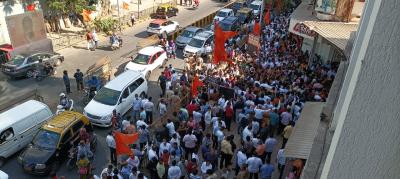 मुंबईतील शिवसेना भवनाबाहेर शिवसैनिकांनी मोठी गर्दी केल्याचं दिसून आलं. त्यामुळे, कडक पोलीस बंदोबस्तही लावण्यात आला होता.