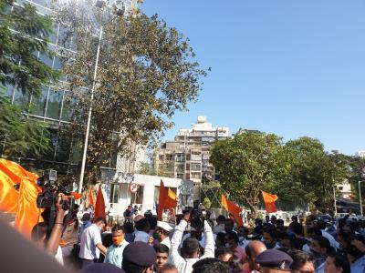 मुंबईतील शिवसेना भनवाबाहेर जमलेली गर्दी आणि शिवसैनिकांनी केलेली तयारी याचेही फोटो समोर आले आहेत.
