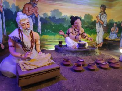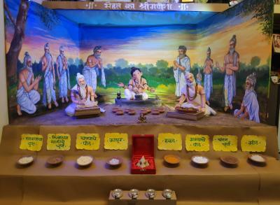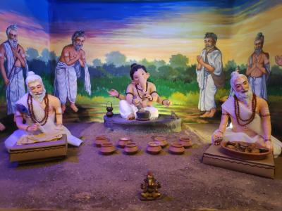 Ganesh Festival 2021 : गणपती म्हणजे ६४ विद्यांचा अधिपती. यातीलच एक विद्या म्हणजे औषधनिर्माणशास्त्र. ही विद्या गणपती बाप्पा ऋषीमुनींना शिकवीत असतानाचे कल्पनात्मक दृश्य यंदा चिंचपोकळीत आनंद इस्टेट येथे साकारले आहे.