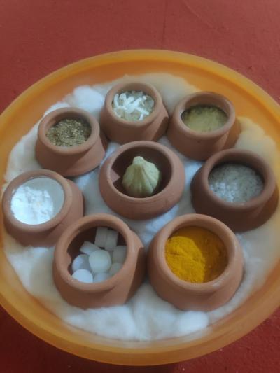 सजावटीतील ऋषीमुनी लिंबू पावडर, हळद, कापूर, चण्याचे पीठ, मक्याचे पीठ, मीठ, साबणाचे तुकडे यांचा मिश्रणातून साकारले आहेत. उत्सवानंतर ऋषीमुनी पाण्यात विसर्जन केल्यानंतर ते विरघळून त्यापासून नैसर्गिक हॅन्ड वॉश तयार करणार असून त्याचा पुनर्वापर करू शकतो. तसेच साकारलेली दीड फुटाची गणेशमूर्ती ही शाडू मातीची असून मूर्ती गिरगावातील मूर्तिकार आकाश कांबळे याने साकारलेली आहे. त्या मूर्तीमध्ये देखील लिंबू चूर्णाचा वापर करण्यात आलेला आहे. लिंबू चूर्ण नैसर्गिक पाणी स्वछ करण्याचे कार्य करते. त्यामुळे गणेश विसर्जनानंतर आपोआपच मूर्तीमधील लिंबू चूर्ण पाणी स्वच्छ करण्याचे कार्य सुरु करेल.