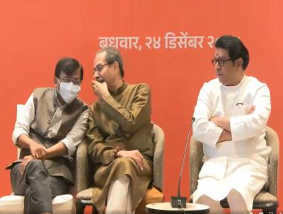 आमच्या दोघांचेही आजोबा प्रबोधनकार ठाकरे हे संयुक्त महाराष्ट्राच्या लढ्यामध्ये पहिल्या पाच सेनापती मधले एक सेनापती होते. त्यांच्यासोबत माझे वडील म्हणजे शिवसेनाप्रमुख बाळासाहेब ठाकरे, राज ठाकरेंचे वडील म्हणजे माझे काका श्रीकांत ठाकरे, अख्खे ठाकरे घराणे मुंबईसाठी संघर्ष करत होता. त्याच्या नंतरचा इतिहास मी काही आता तुम्हाला सांगत बसत नाही, अशी आठवण उद्धव ठाकरेंनी आवर्जून सांगितली.