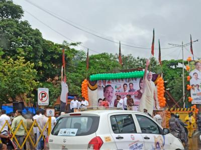 केंद्रीयमंत्री नारायण राणे यांच्या जनआशीर्वाद यात्रेला आज मुंबईतून सुरुवात झाली आहे. नारायण राणे मुंबई विमानतळावर येताच मोठी गर्दी त्यांना घ्यायला जमा झाली होती.