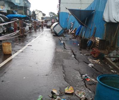 मुंबईत शिवडी रेल्वे क्रॉसजवळ रस्ता खचला, नागरिकांचा जीव मुठीत घेऊन प्रवास; पाहा Photos