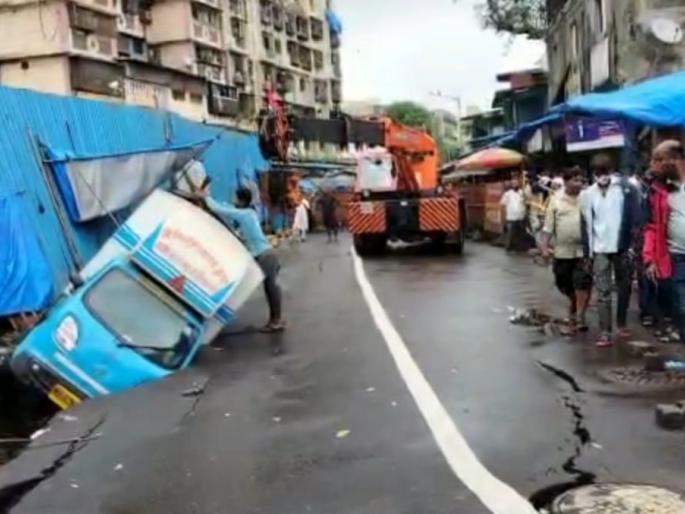 मुंबईत शिवडी रेल्वे क्रॉसजवळ रस्ता खचला, नागरिकांचा जीव मुठीत घेऊन प्रवास; पाहा Photos