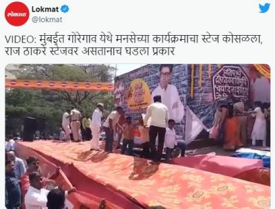 राज ठाकरे, बाळा नांदगावकर यांच्यासह मनसेचे इतर नेते आणि स्थानिक कार्यकर्ते उपस्थित होते. पण, स्टेजवर क्षमतेपेक्षा अधिक कार्यकर्ते आल्यानं स्टेजचा पुढील भाग कोसळला.