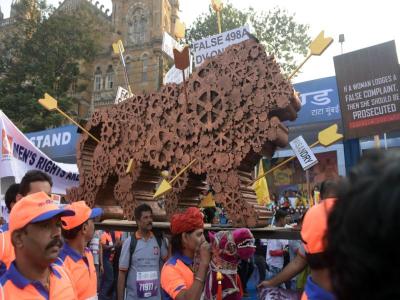 15 वी मुंबई मॅरेथॉन आज उत्साहात संपन्न झाली. या मॅरेथॉनच्या माध्यमातून विविध सामाजिक विषयांना हात घालणाऱ्या धावपटूंची स्वप्निल साखरे यांनी टिपलेली क्षणचित्रे ( सर्व छायाचित्रे - स्वप्निल साखरे)