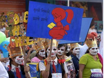 यावेळी काही महिलांनी लक्षवेधी वेशभूषा करून बेटी बचावचा संदेशही दिला.