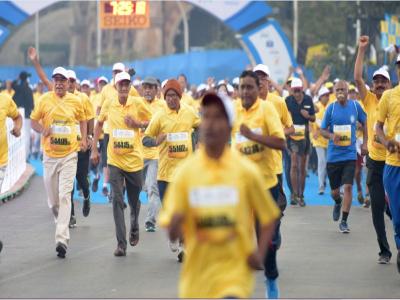 मुंबई मॅरेथॉनमध्ये अनेक ज्येष्ठ नागरिकही उत्साहाने सहभागी झाले होते.