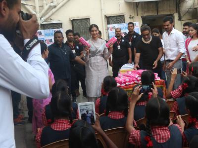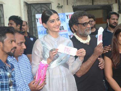 चित्रपटाच्या प्रमोशनचा भाग म्हणून सोनम कपूरने कुर्लामधील एका शाळेत मुलींना सॅनिटरी नॅपकीन वाटले