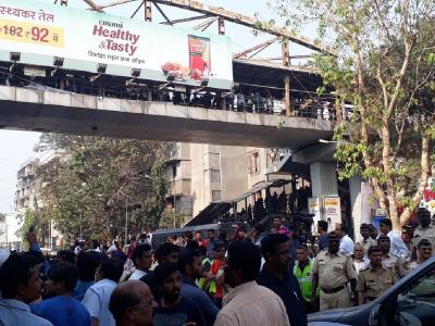 पवनहंस स्मशानभूमी समोर असलेल्या रेल्वे ब्रीजवर चाहत्यांची गर्दी, ब्रीज ओव्हरलोड होण्याची भीती.