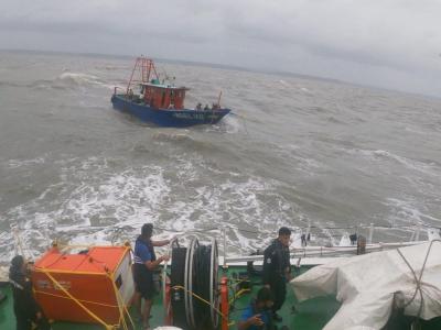 त्यांच्या जीवाला धोका असून समुद्रातील खडकाला नांगर टाकून हे मच्छीमार जीव वाचवण्यासाठी धडपडत होते. वादळामुळे त्यांची बोटही ओढली जात होती. ती केवळ नांगराच्या सहाय्यने तग धरून होती.