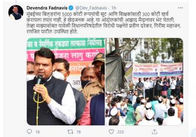 मुंबईच्या बिल्डरांना 5000 कोटी रूपयांची सूट आणि शिक्षकांसाठी 300 कोटी खर्च करायला तयार नाही, हे खेदजनक आहे.