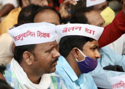 विनाअनुदानित शाळांना अनुदान मिळावे आणि शिक्षकांना सेवेत सामावून घेण्यात यावे, यासाठी शिक्षक आझाद मैदानात बसले आहेत.