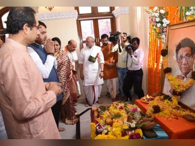 महापौर बंगल्याची जागा बाळासाहेबांच्या स्मारकासाठी देण्याचा, या स्मारकासाठी १०० कोटींचा निधी मंजूर करण्याचा निर्णय घेतल्यानंतर आज मुख्यमंत्री फडणवीस स्मारकाच्या भूमिपूजनालाही गेले आणि बाळासाहेबांपुढे नतमस्तकही झाले. उद्धव यांनी त्यांना आरतीचा मानही दिला.