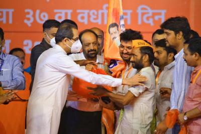 उद्धव ठाकरेंनी आपल्या भाषणापूर्वी या शिवसैनिकाची भेटही घेतली. त्यावेळी, त्याने श्रीराम-राम लिहिलेल्या वह्यांचा गठ्ठा मुख्यमंत्र्यांना भेट स्वरुपात दिला.