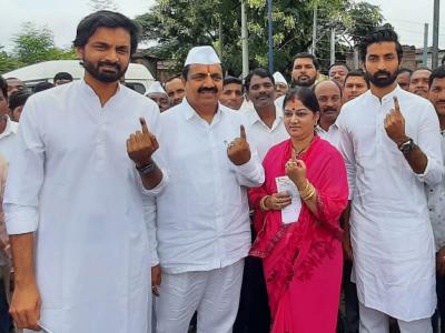 महाराष्ट्र राज्य निर्मितीनंतरच्या 13व्या विधानसभा निवडणुकीसाठी सोमवारी 21 ऑक्टोबर रोजी मतदान होत असून सुमारे 9 कोटी मतदार या निवडणुकीत उतरलेल्या 3237 उमेदवारांच्या राजकीय भवितव्याचा फैसला करणार आहेत. राज्यात मतदानाचा उत्साह कायम असून, अनेक राजकारण्यांनी आतापर्यंत मतदान केलं आहे. त्यानंतर राजकीय नेतेमंडळींचेही मतदान करून झाल्यानंतरचे फोटो समोर आले आहेत.