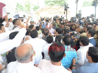 राज्याच्या पावसाळी अधिवेशनाच्या आजच्या दिवसाची सुरुवात सत्ताधारी आणि विरोधकांच्या जोरदार राड्यानं झाली. विधानभवनाच्या पायऱ्यांवर शिंदे गटातील आमदार आणि राष्ट्रवादीच्या आमदारांमध्ये धक्काबुक्की झाली. हे फोटो तुम्हालाही प्रश्न पडेल की यांना यासाठी निवडून दिलं होतं का? (सर्व छायाचित्र- दत्ता खेडेकर)