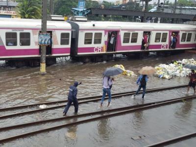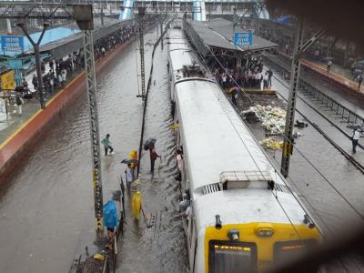 सेंट्रल लाईन, हार्बर लाईनवरही पाणीच-पाणी झाले आहे. ठाण्यातील लोकल स्टेशनवरील ट्रॅक पाण्यासाठी गेले आहेत. या पाण्यातूनच रेल्वेचा लोकल प्रवास सुरू आहे.