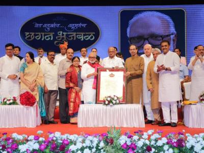 "आज मुख्यमंत्री एकनाथ शिंदे आणि उपमुख्यमंत्री देवेंद्र फडणवीस यांनाही आमंत्रित केलं होतं, पण व्यस्त कार्यक्रमामुळे ते आले नसतील. पण त्यांच्या शुभेच्छा असतील असं गृहित धरतो", असंही छगन भुजबळ म्हणाले.