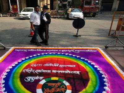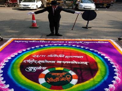 मुंबई - फोर्ट येथील काळाघोडा येथे रांगोळीच्या माध्यमातून 26/11तील शहिदांना आदरांजली वाहण्यात आली आहे.