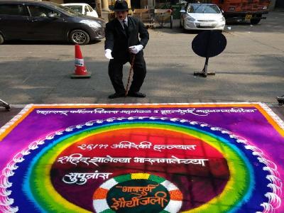 रांगोळी काढून 26/11च्या दहशतवादी हल्ल्यातील शहिदांना भावपूर्ण आदरांजली वाहण्यात आली.