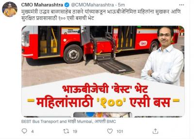 मुख्यमंत्र्यांच्या अधिकृत ट्विटर हँडलवरुनही यासंदर्भात ट्विट करण्यात आले असून महिलांना ही भाऊबीजेची भेट असल्याचे सांगण्यात आलंय.
