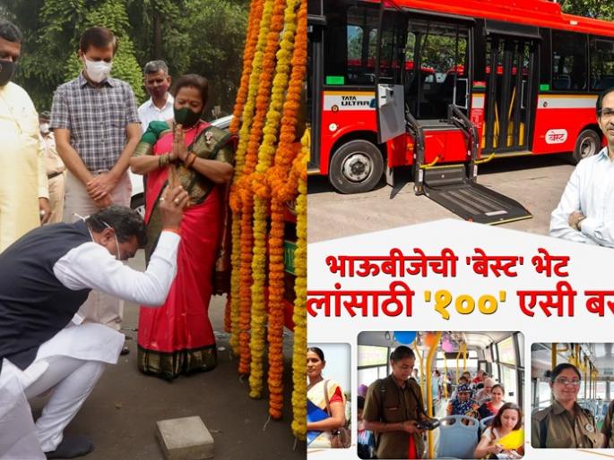 1 / 12मुंबईमधील महिला प्रवाशांना गर्दीच्या वेळी बेस्टच्या बसमधून सुखद आणि सुरक्षित प्रवास करता यावा, यासाठी बेस्ट उपक्रमाने 'लेडीज स्पेशल लेडीज फर्स्ट' या तत्वावर 100 बसेस 6 नोव्हेंबरपासून सुरू केल्या आहेत. 2 / 12मुख्यमंत्री उद्धव ठाकरे यांनी मुंबईकर महिलांना दिलेली ही भाऊबीजेची भेट आहे. 3 / 12मुंबईकर महिलांनी या बसचा वापर मोठ्या प्रमाणात करावा, असे आवाहन मुंबईच्या महापौर किशोरी पेडणेकर यांनी केले आहे.4 / 12मुख्यमंत्री उद्धव ठाकरे यांच्या आदेशाने बेस्ट उपक्रमाकडून 'लेडीज स्पेशल लेडीज फर्स्ट' बस सेवेचा लोकार्पण सोहळा मुंबईच्या महापौर किशोरी पेडणेकर यांच्या हस्ते झाला. 5 / 12यावेळी उप-महापौर सुहास वाडकर, बेस्ट समिती अध्यक्ष आशिष चेंबूरकर, बेस्टचे महाव्यवस्थापक लोकेश चंद्रा आदी मान्यवर उपस्थित होते. 6 / 12या बस सेवेच्या लोकार्पणानंतर महापौर बोलत होत्या. यावेळी महापौर म्हणाल्या की, गर्दीच्या वेळी महिला प्रवाशांना प्रवास करताना अडचणी येतात. 7 / 12गर्दीच्या वेळी महिला प्रवाशांसाठी 100 विशेष बस सुरू केल्याने महिला प्रवाशांची अडचण दूर होणार आहे. या बसमुळे महिला प्रवाशांचा प्रवास सुखद आणि सुरक्षित होणार आहे. 8 / 12मुख्यमंत्री उद्धव ठाकरे यांनी भाऊबीज म्हणून मुंबईकर महिला प्रवाशांना ही दिलेली भेट आहे, असे महापौरांनी म्हटले.9 / 12सध्या मुंबईतील विविध भागात या बसेसना महिलांचा चांगला प्रतिसाद मिळत असून या बेस्ट उप्रक्रमाचे कौतुकही करण्यात येत आहे.10 / 12बेस्टच्या या गाड्यांमुळे महिलांची चांगलीच सोय झाली असून गर्दीच्या ठिकाणी होणार त्रास कमी होण्यास मदत होईल. 11 / 12नवीन 100 एसी बस गाड्यांमुळे वातानुकूलित सफर करण्याचा आनंद महिलांना घेता येईल. 12 / 12मुख्यमंत्र्यांच्या अधिकृत ट्विटर हँडलवरुनही यासंदर्भात ट्विट करण्यात आले असून महिलांना ही भाऊबीजेची भेट असल्याचे सांगण्यात आलंय.