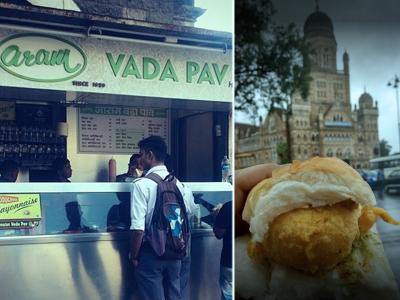 आराम वडापाव, ठिकाण - सीएसएमटी रेल्वे स्थानकाबाहेर, मुंबई - 400001