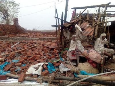 गारपिटीने मोडून गेलेला मोबाईल टॉवर