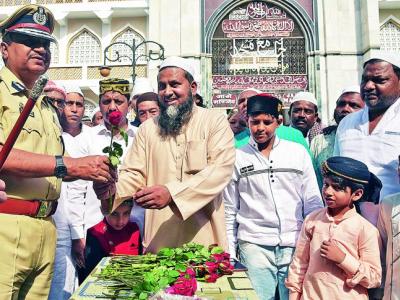 पोलीस आयुक्त डॉ. भूषणकुमार उपाध्याय यांनी ईदनिमित्त मुस्लीम बांधवांना गुलाब पुष्प देवून शुभेच्छा दिल्या