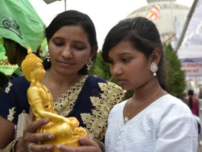 दीक्षाभूमी परिसरात बुद्ध प्रतिमा न्याहाळतांना बौद्ध भगीनी