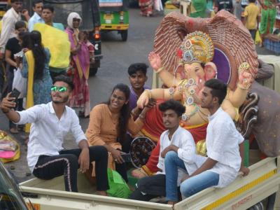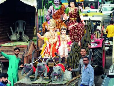 गुलालाची उधळण, ढोल ताश्यांचे होणारे गजर, त्यावर बेधुंद होऊन थिरकणारी तरुणाई, बाप्पाला घरी घेऊन जाण्यासाठी लगबग, हा आनंद अनुभवण्यासाठी जमलेले नागपूरकर...‘गणपती बाप्पा मोरया...एक दोन तीन चार, गणपतीचा जयजयकार’ असा अखंड गजर करीत उपराजधानीत बाप्पाचे आगमन झाले. महालातील चितारओळीत भक्तांचा उत्साह असा ओसंडून वाहात होता. -विशाल महाकाळकर
