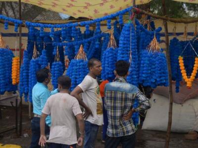 दीक्षाभूमीसमोरच्या रस्त्यावर दुतर्फा उभारलेल्या छोटेखानी दुकानांमध्ये टांगलेल्या माळा