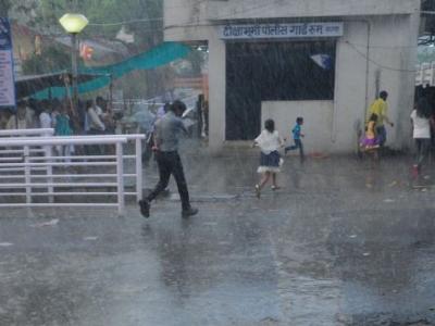 संध्याकाळच्या वेळेस अवचित कोसळलेल्या पाऊसधारांमुळे उपस्थितांची बरीच तारांबळ उडाली.