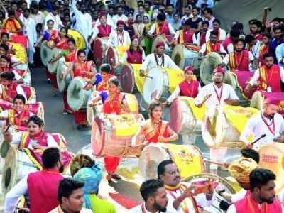 छत्रपती शिवाजी महाराज यांच्या राज्याभिषेक सोहळ्यात ढोल ताशा पथकाने रंगत आणली.