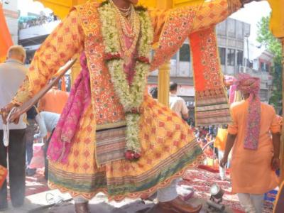 छत्रपती शिवाजी महाराजांच्या राज्याभिषेक सोहळ्यात आरती करताना शिवप्रेमी.