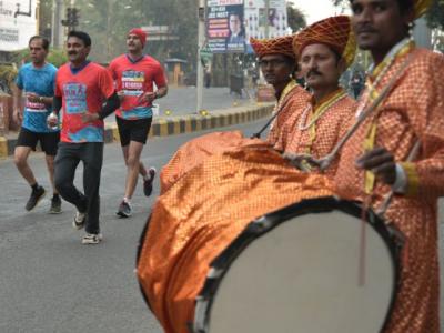ढोलताशा पथकाने मॅरेथॉनमध्ये जणू जान ओतली होती.