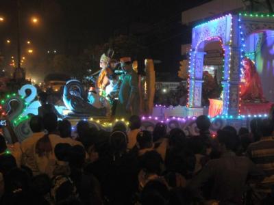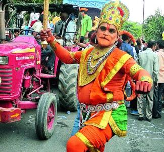 राम लक्ष्मण संग जानकी, जय बोलो हनुमान की..., एक मुखाने बोला, बोला जय जय हनुमान... अशा पवनपुत्राचे गुणगान करणाऱ्या भजनांच्या गजरात हनुमान जनमोत्सवनिमित्त नागपूरच्या राजाबाक्षाच्या हनुमान मंदिरातून भव्य शोभायात्रा काढण्यात आली.