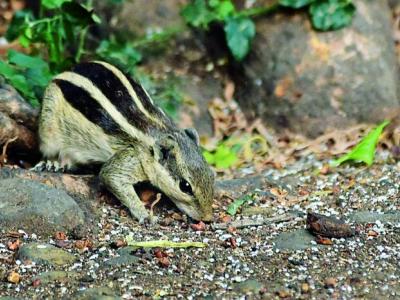 ऊन असो वा पाऊस.. दाणा टिपायचा आणि भुर्रर्र व्हायचे हा खारुताईचा बाणा